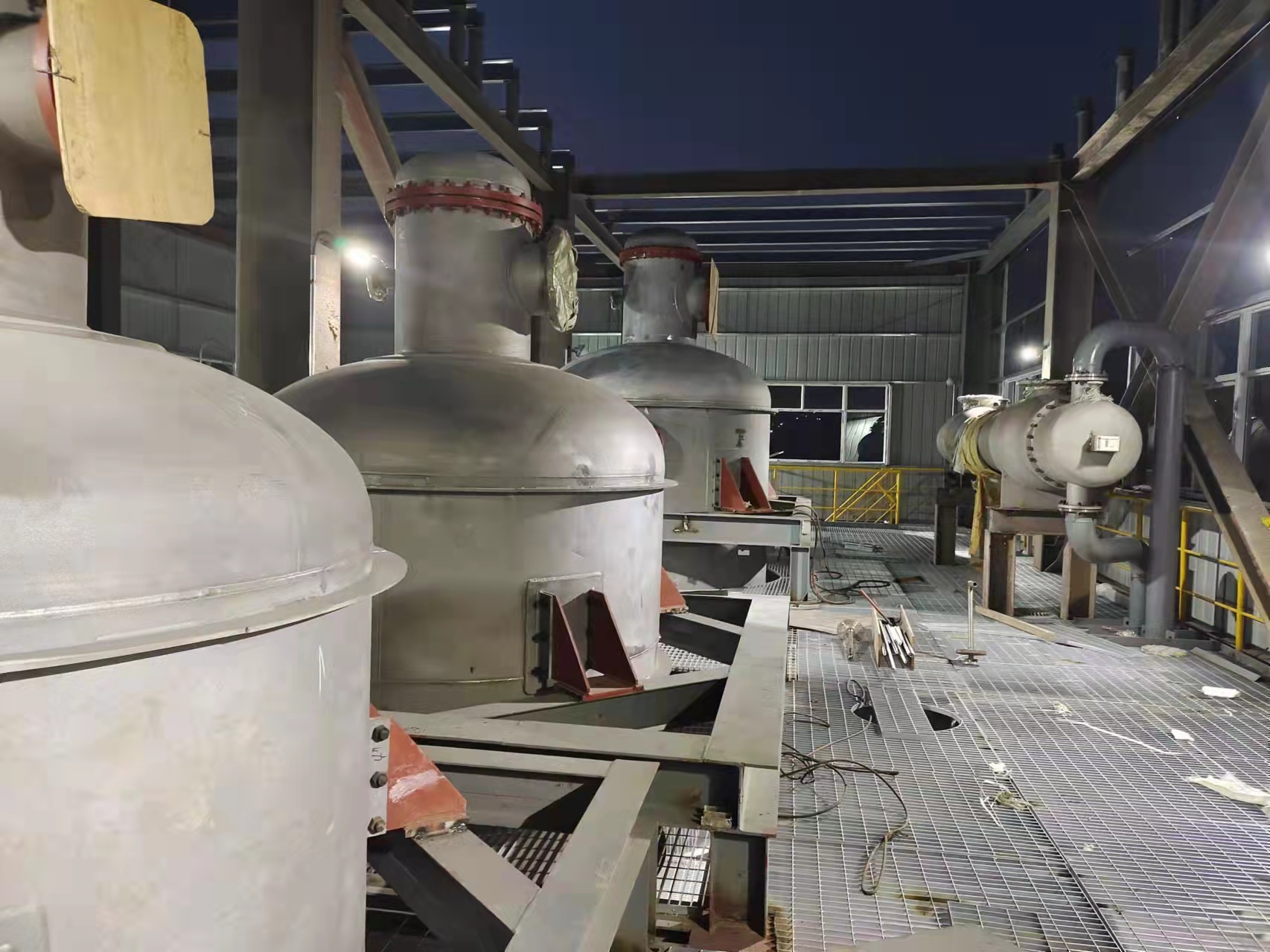 捷报连连:2021年4月30日宝冶金年会中标本省企业(龙钢集团)烧结机头电除尘灰资源化利用项目,多效蒸发装置设计,制造,安装,运行项目。该项目是基于处理主业公司烧结机头电除尘灰中提取k,Na等元素后,制成钾肥材料增加资源化高附加值综合利用。宝冶项目组人员充分发挥努力拼搏的精神,按期完成了三效蒸发器加工生产,并于2021年12月初完成该项目的安装。随着核心关键设备三效蒸发器的水联动试车,带料成功运行,标志着该项目整体成功投运。2021年12月20日在现场工作人员的欢呼声中胜利出盐了(龙钢集团网站也进行了报道),这标志着宝鸡宝冶金年会向高端钛装备制造迈上了新的台阶。宝冶工匠好样的!